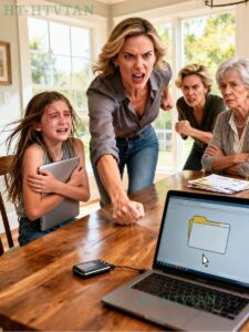 My project. My whole project. They took my laptop and I… I tried to tell them, but they said screens were bad and I needed to go outside and then… then Aunt Vanessa said she deleted everything I had open because she thought it was games and, mom, it’s gone. All of it. Five months. Gone. The world went completely still. Like a vacuum. Like nothing existed except Mia’s shattered voice.